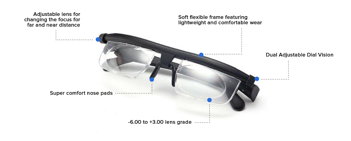 The Clear View Pro Adjustable Glasses has a dial on the side of the glasses so you can adjust to your needs depending if you want to see what is in the distance or what is near you.